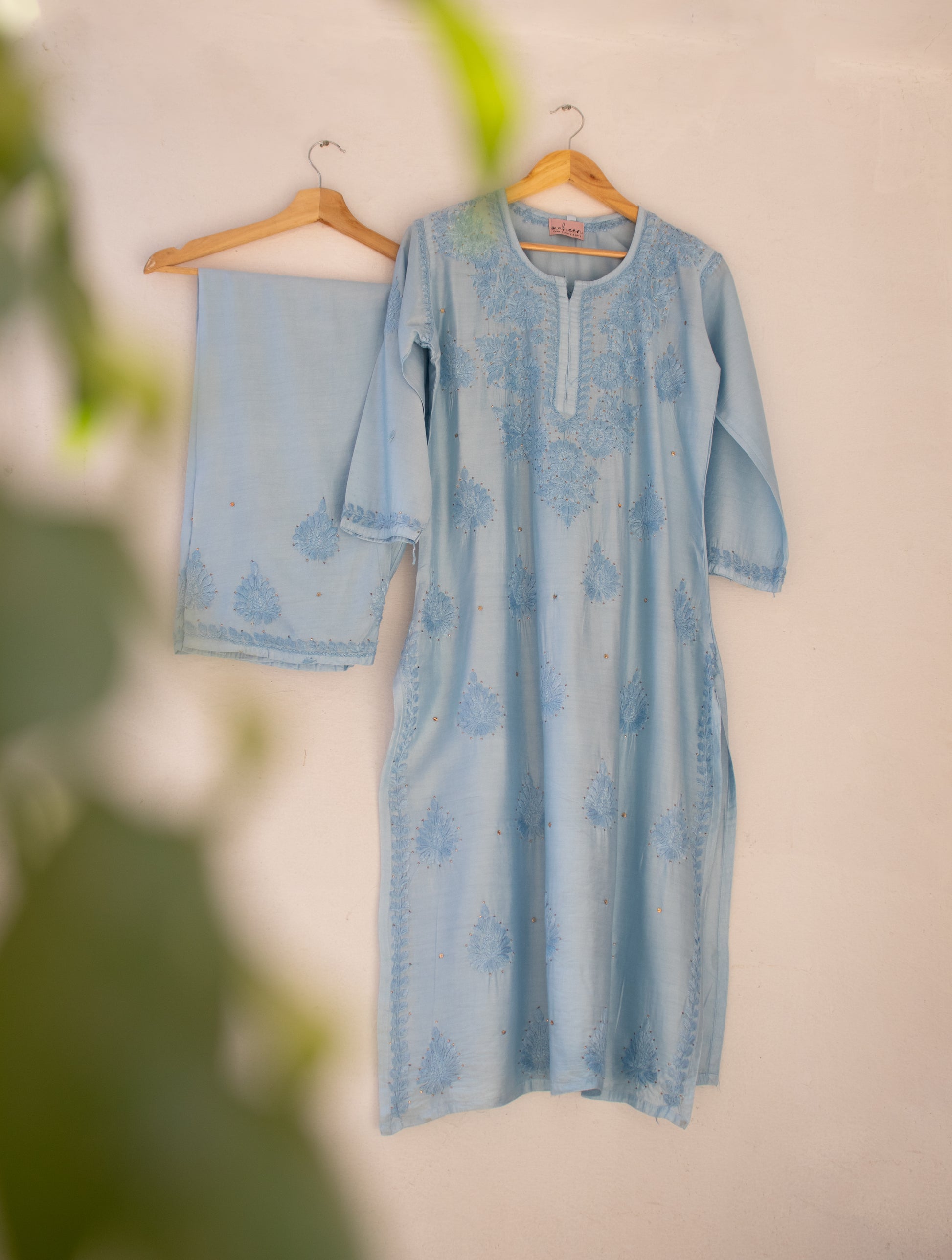 3 Piece Chanderi Suit Powder Blue